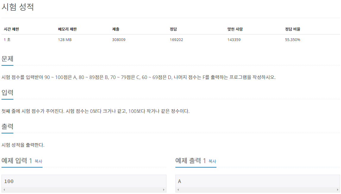 9498번: 시험 성적