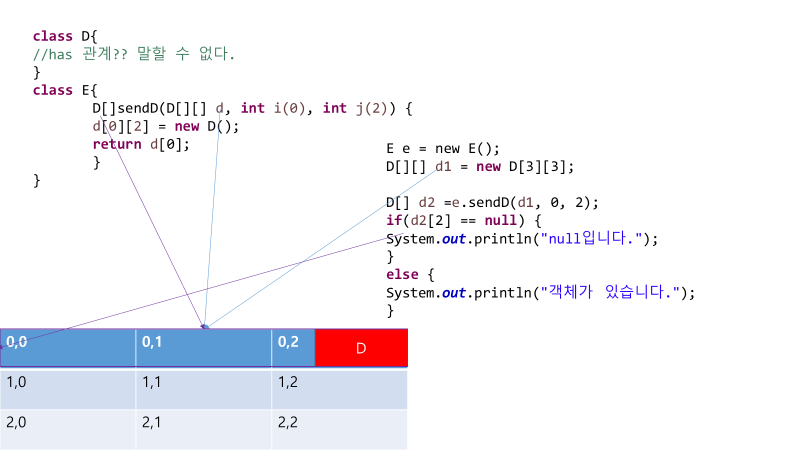 // 이렇게 해주면 d[0][2]에만 객체가 있는 것이고 나머지에는 없는 것.