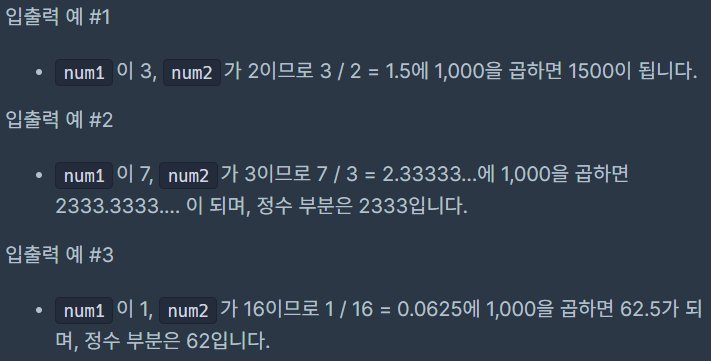 - 그리고 문제에서 요구한 것이, 1,000을 곱한 후에 정수 부분을 리턴하라고 했으므로,
