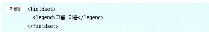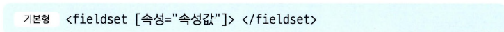 - 하나의 폼 안에서 여러 구역을 나누어 표시할 때 <fieldset> 태그를 사용