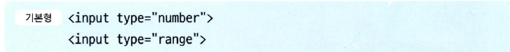 4) type="number", type="range" : 숫자 입력 필드를 나타냄
