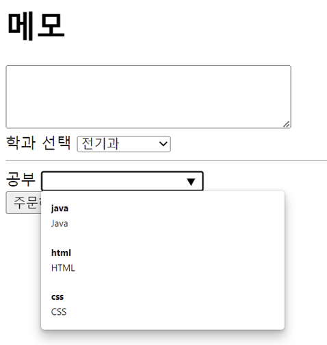 - 그 사이에 <option> 태그를 사용해 각 데이터의 옵션을 표시한다.