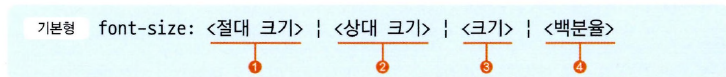 - 글자 크기의 단위는 px(픽셀)이나 pt(포인트) 등으로 지정할 수 있고 백분율을 사용