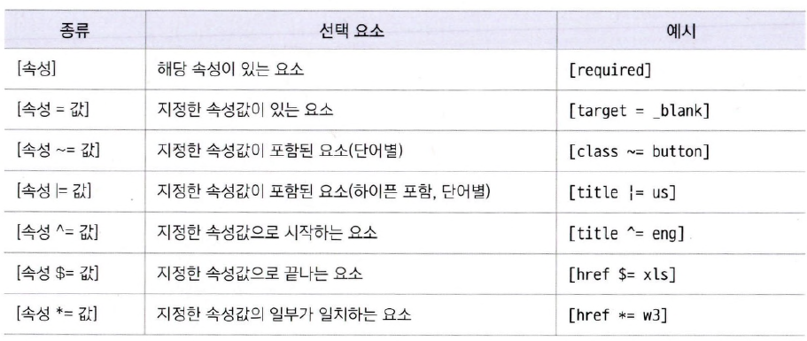- 속성값에 따라 원하는 요소를 선택할 수 있다.