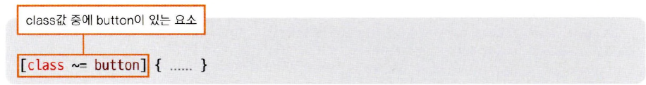 [속성 ~= 값] : 여러 값 중에서 특정 속성값이 포함된 속성 요소를 선택