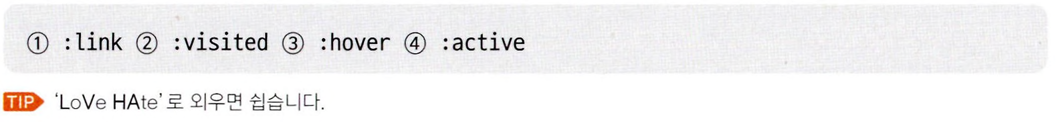 - 이 때 링크의 밑줄을 없애거나 색상을 바꾸려면 :link 선택자를 사용한다.