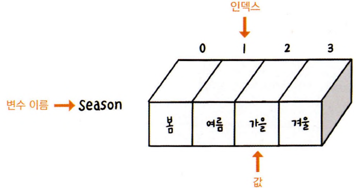 - 하나의 변수에 값을 여러개 지정. 여러 개의 데이터 값을 하나의 배열 이름으로 묶어서 선언.