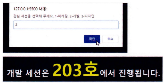 var session = prompt("관심 세션을 선택해 주세요. 1-마케팅, 2-개발, 3-디자인");