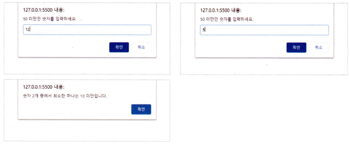 alert("두 개의 숫자 중 10 미만인 수는 없습니다.");