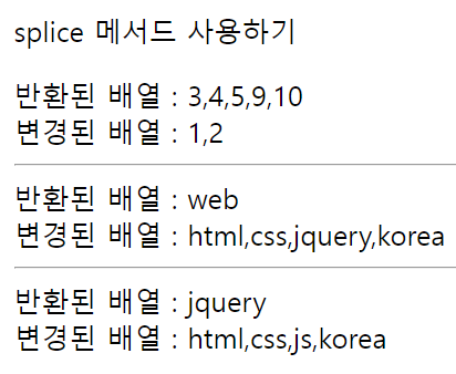 - 이 메서드를 실행하면 삭제한 요소로 이루어진 새로운 배열이 결과값으로 반환.