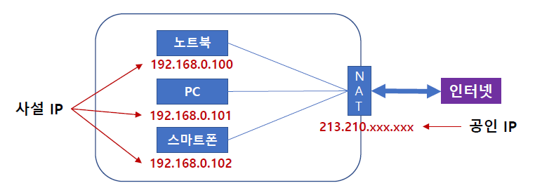 - 내부망 내에서만 한정적으로 사용하는 IP