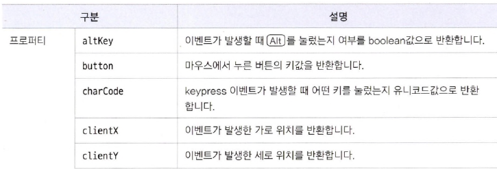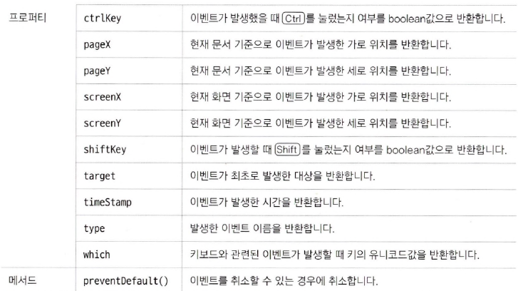 event 객체의 주요 프로퍼티와 메서드