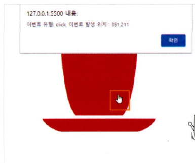alert("이벤트 유형: " + event.type + ", 이벤트 발생 위치 : " + event.pageX + "," + event.pageY);