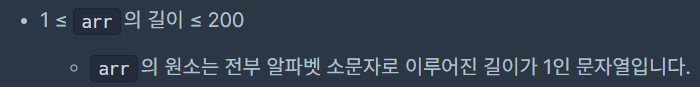 문자들이 담겨있는 배열 arr가 주어집니다.