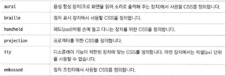 - 즉, 사용자가 어떤 미디어를 사용하는가에 따라 사이트의 형태가 바뀌도록 CSS를 작성하