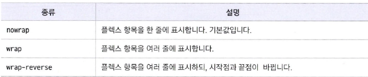 - 플렉스 컨테이너 너비보다 많은 플렉스 항목이 있을 경우 줄을 바꿀지 여부를 지정