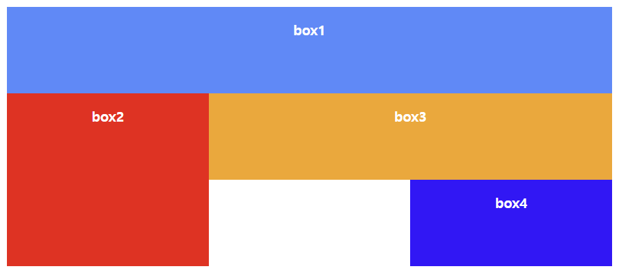 - box1 영역의 칼럼 라인은 1 번부터 4번까지 차지하고, box2 영역의 칼럼 라인은 1번부터 2번까지, 줄 라인은 2번에서 4번까지 차지한다.