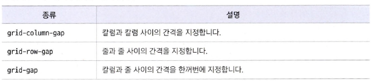 - grid-gap 속성을 이용해 칼럼과 줄의 간격을 한꺼번에 지정할 수도 있는데,