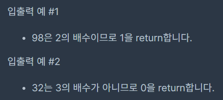 n의 배수가 아니라면 0을 return하도록 solution 함수를 완성해주세요.