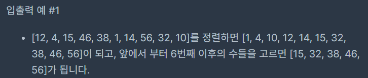 - 정렬을 먼저 하고, 조건에 맞는 숫자를 추출해서 가져오기