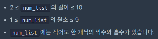 정수가 담긴 리스트 num_list가 주어집니다.
