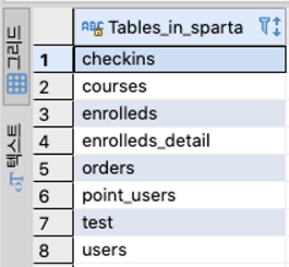 - courses: 스파르타의 개설 강좌 정보가 들어있어요