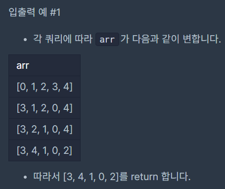 각 query마다 순서대로 arr[i]의 값과 arr[j]의 값을 서로 바꿉니다.