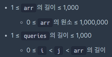 정수 배열 arr와 2차원 정수 배열 queries이 주어집니다. queries의 원소는 각각 하나의 query를 나타내며, [i, j] 꼴입니다.
