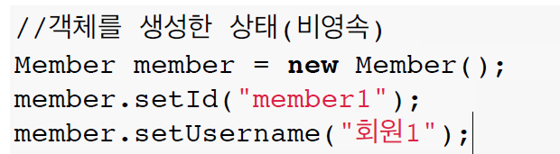 비영속 상태에서는 객체가 생성만 된 것이고,