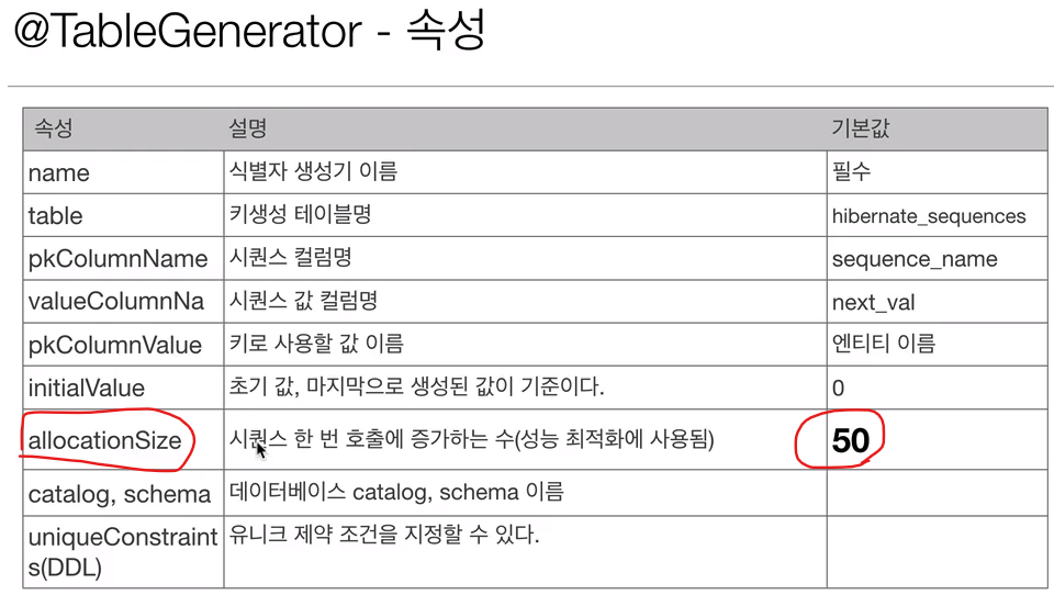 @TableGenerator 속성에서도 똑같다.