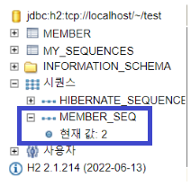 Hibernate: create sequence MEMBER_SEQ start with 1 increment by 1