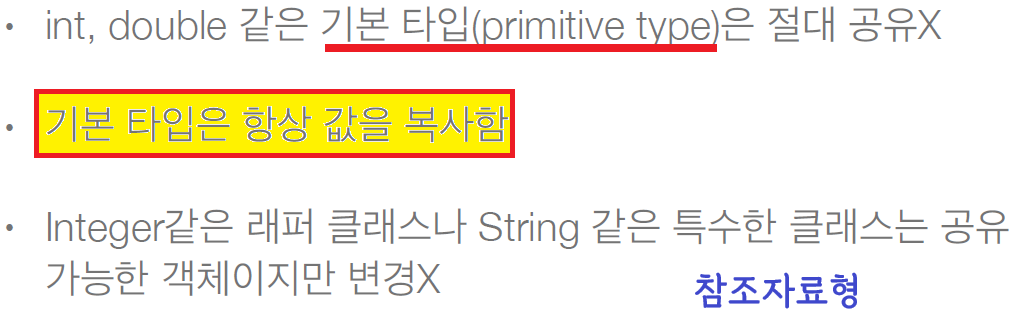 참고 : 자바의 기본 타입은 절대 공유 x