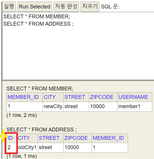 /* create one-to-many row inflearn.exjpa.jpaExample.Member.addressHistory */ update