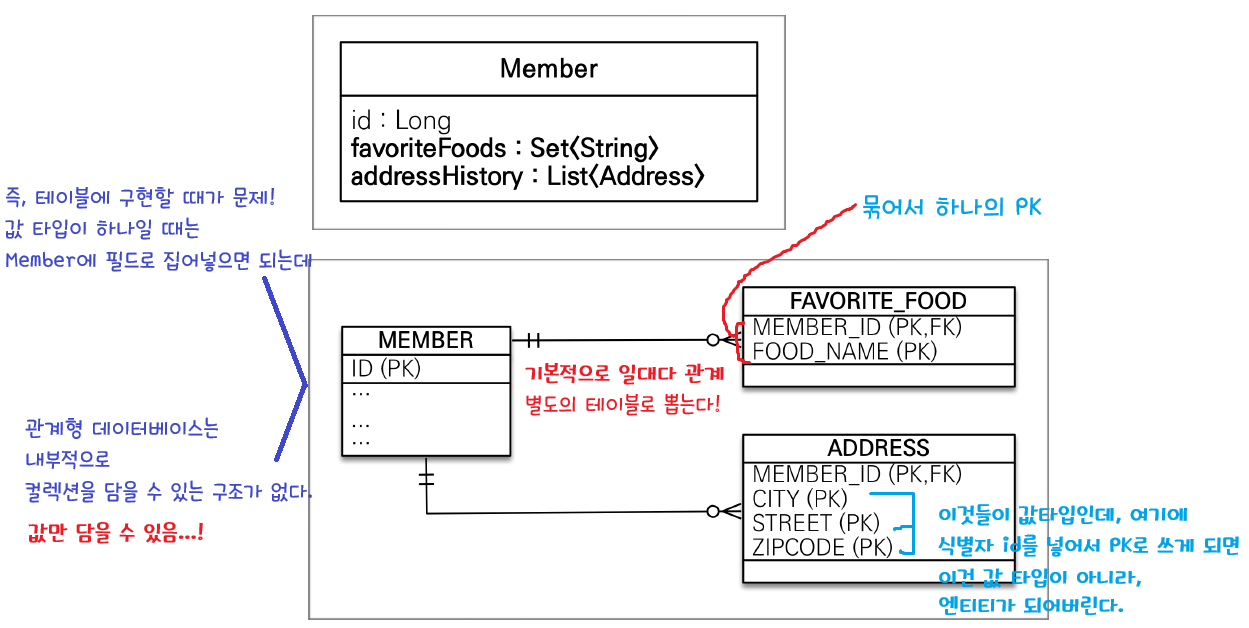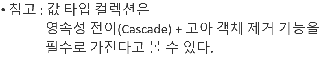 - 값 타입을 컬렉션에 담아서 쓰는 것
