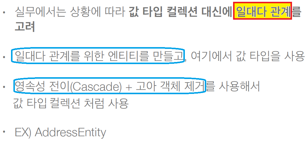 미리 결론 스포, 값 타입 컬렉션은 언제 쓰는가?