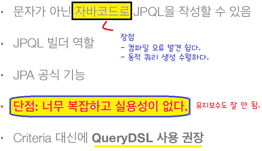 어쨌든 이런동적쿼리 짜기 문제를 해결하기 위해 나온 것이 Criteria이다.