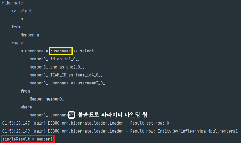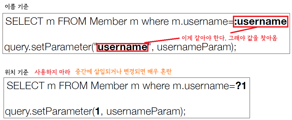 Member result = em.createQuery("select m from Member m where m.username = :username", Member.class)