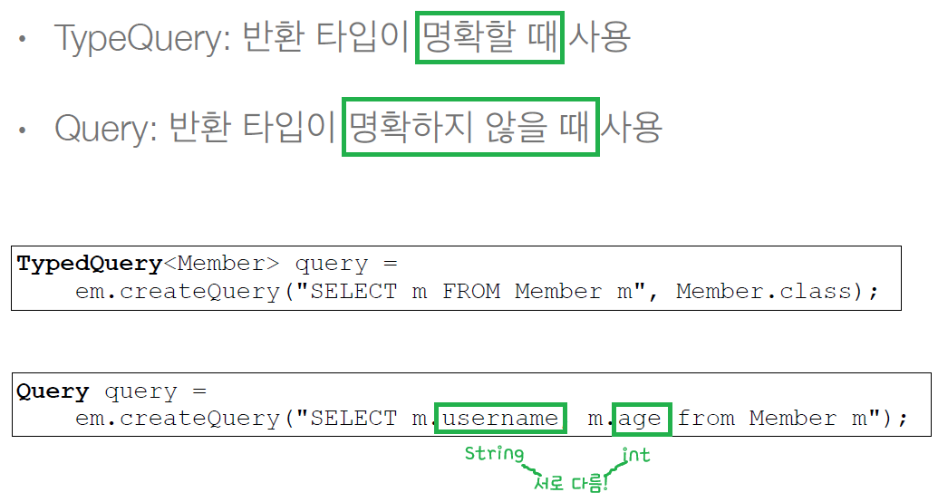 TypedQuery<Member> query = em.createQuery("select m from Member m where m.id = 10", Member.class);