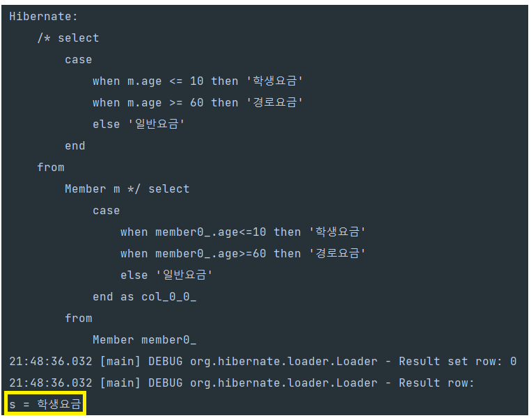 String query = "select NULLIF(m.username, '관리자') from Member m";