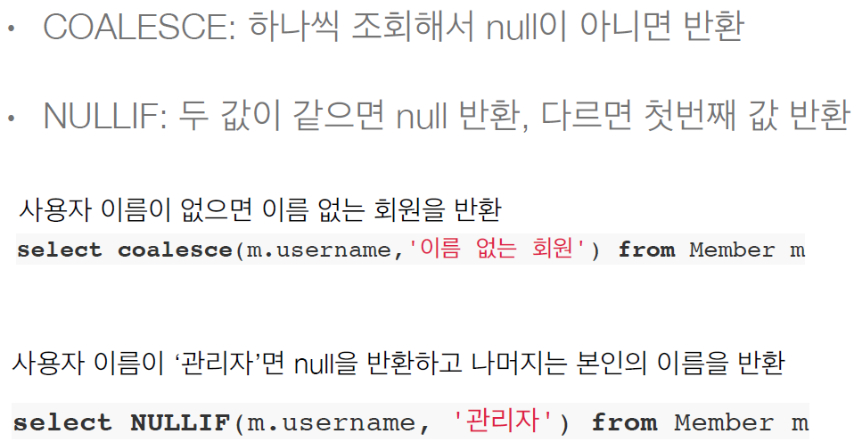 // String query = "select coalesce(m.username, '이름 없는 회원') from Member m";