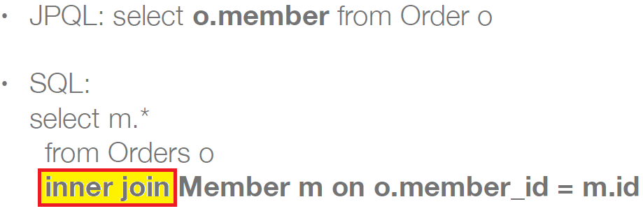 -> 객체에서는 .(점)을 찍어서 하면 되지만 DB에서는 조인이 일어나야 한다.