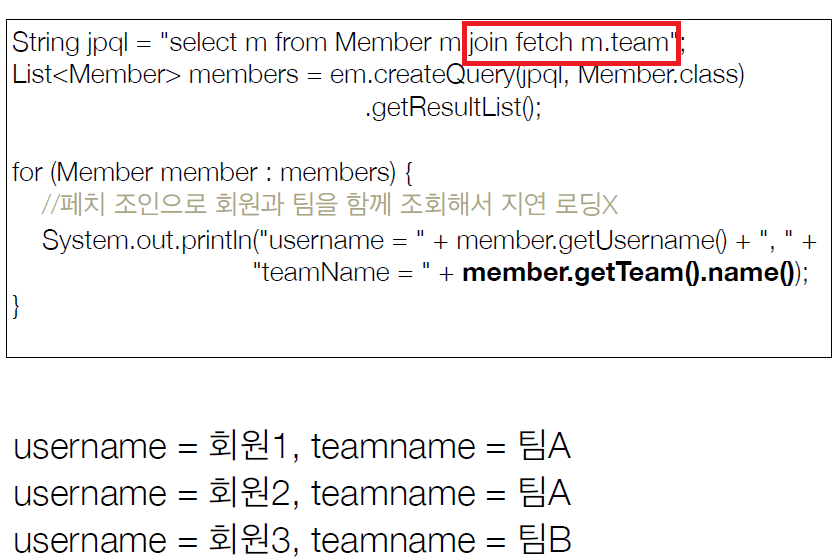 페치 조인 사용 코드