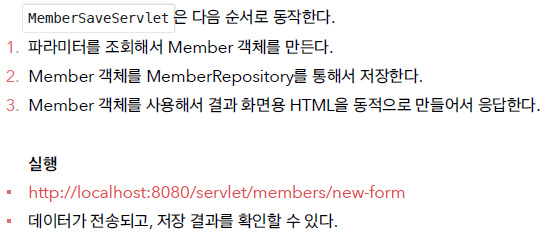 사용자가 정보를 입력하면 이 정보는 /servlet/members/save URL로 전송된다.