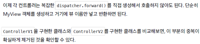 - ControllerV2에서는 뷰 페이지의 경로 등을 직접 처리하는 것이 아니라, MyView 객체를 반환
