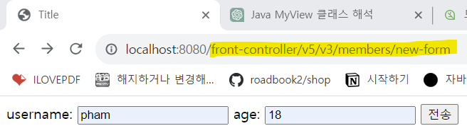 등록: http://localhost:8080/front-controller/v5/v3/members/new-form