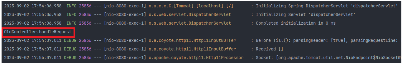 콘솔에 OldController.handleRequest 이 출력되면 성공.