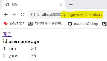 목록: http://localhost:8080/springmvc/v1/members