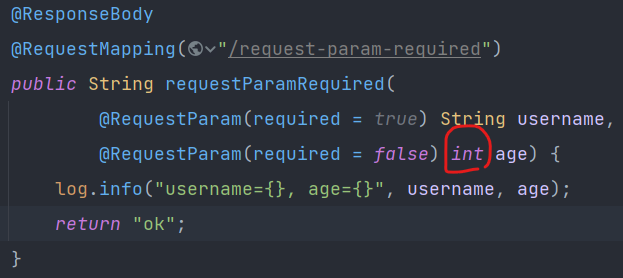 @RequestParam(required = false, defaultValue = "-1") int age) {