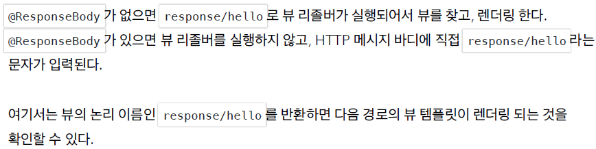 // 뷰의 이름("response/hello")을 반환한다. 이를 통해 뷰와 모델 데이터를 전달할 수 있다.