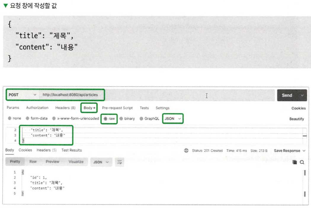 여기에서는 /api/articles에 POST 요청이 오면 @PostMapping을 이용해 요청을 매핑한 뒤,블로그 글을 생성하는 BlogService의 save() 메서드를 호출한 뒤,생성된 블로그 글을 반환하는 작업을 할 addArticleO 메서드를 작성할 예정.